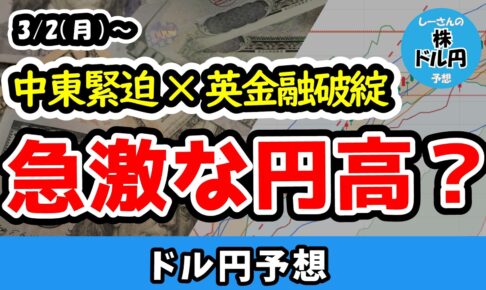急激な円高転換リスク!中東情勢と英MFS倒産によるリスク回避と日本の財政政策【週間ドル円予想 2026/3/2~】