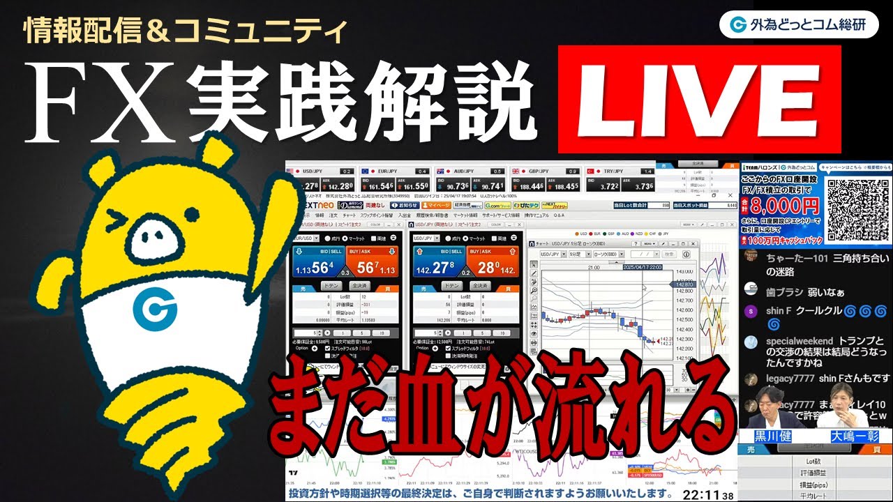 外為どっとコム総合研究所のTEAMハロンズ( )が平日毎日21時よりFXのライブ配信をしています。番組では、投資に役立つかもしれない注目材料の紹介、テクニカル分析などを行っているほか、実際にFX取引・バイナリオプションのリアルトレードも行っています。