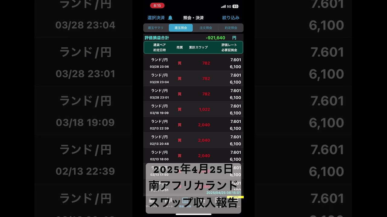 2025年4月25日 南アフリカランド スワップ収入報告