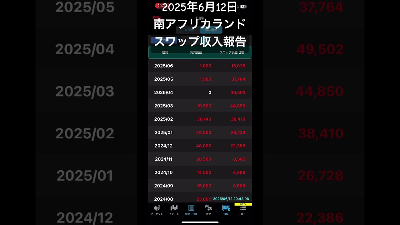2025年6月12日 南アフリカランド スワップ収入報告