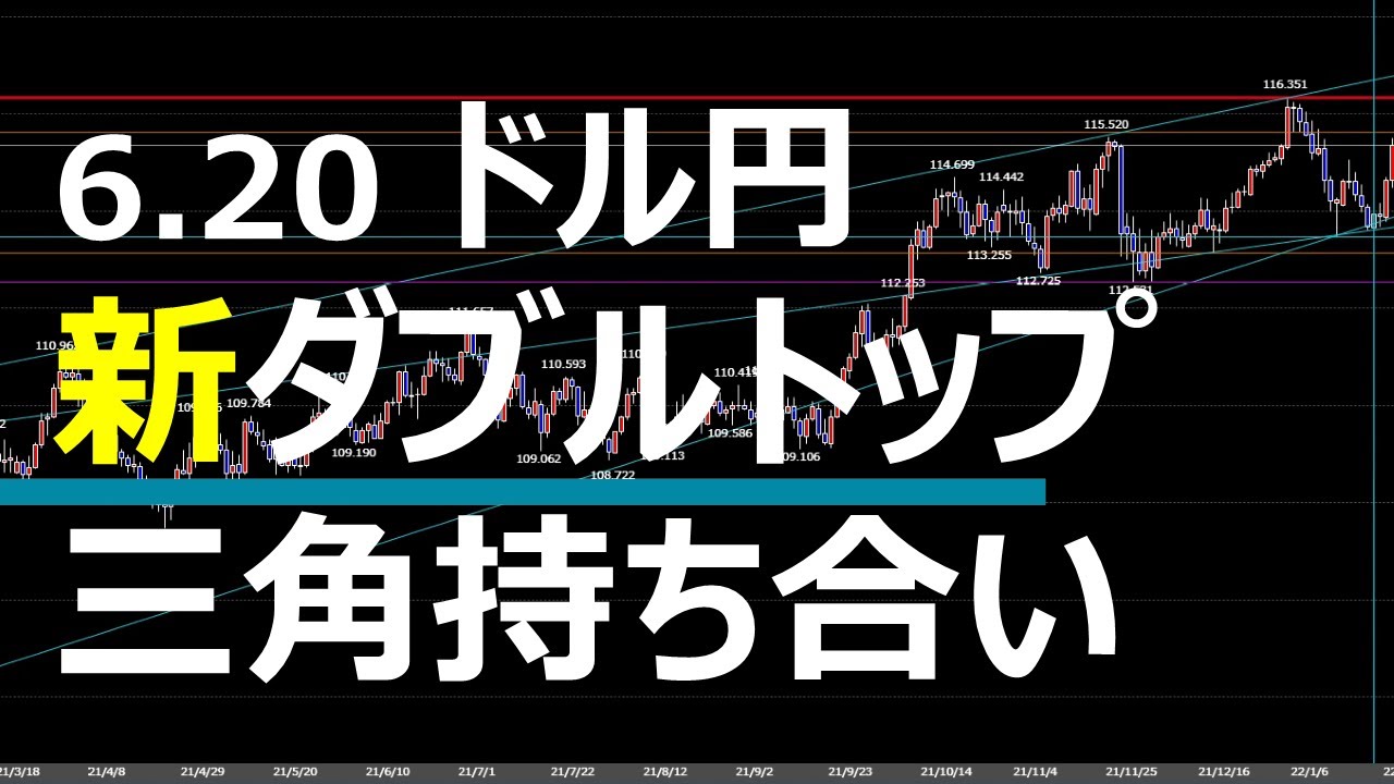 今日は、いつもと少し違った切口のフィボ解説、ダブルトップ三角持ち合い解説と、新鮮でした。