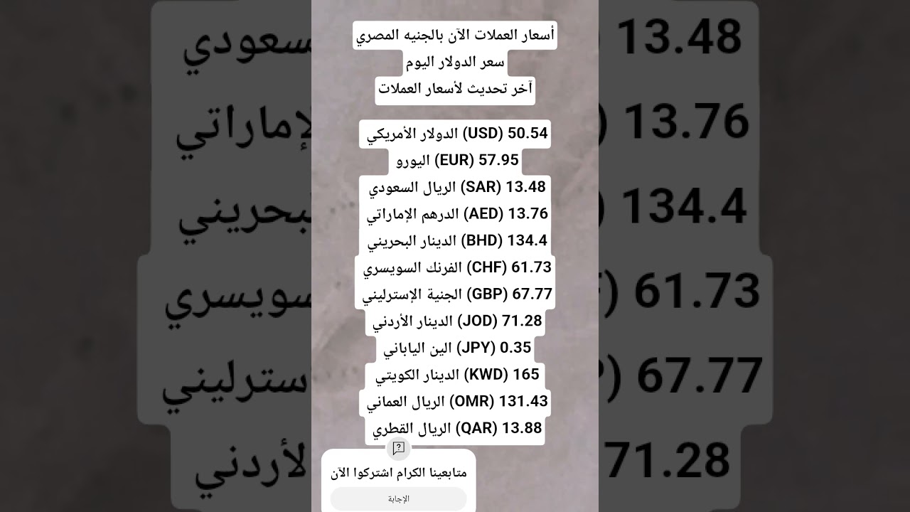 آخر تحديث لسعر العملة