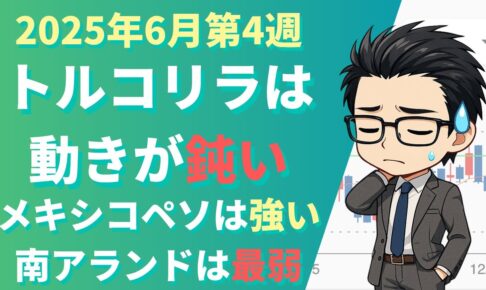 📌 今回のテーマ 「トルコリラ、メキシコペソ、南アランド 2025年6月第4週 見通し」について解説しています。 FXの自動売買で「月5,000円の飲み代」を稼ぐことを目指す中で、初心者の方にもわかりやす…