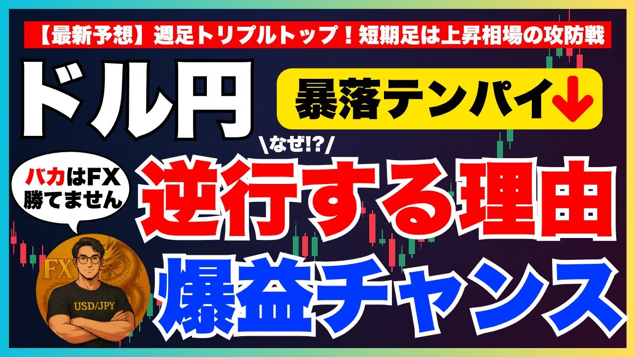 【FXドル円最新予想】ロング危険!修正3波ショート狙い