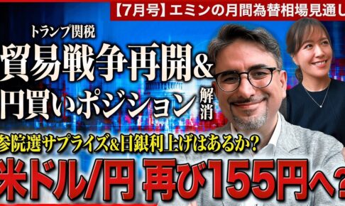 エミンの月間為替相場見通し2025年7月号!天才エコノミストのエミン・ユルマズ氏が、堤友香さんと米ドル/円について解説します。エミンさんの今後の見通しに注目です。 0:00 オープニング 0:15 米ドル/円の推移:米ド…