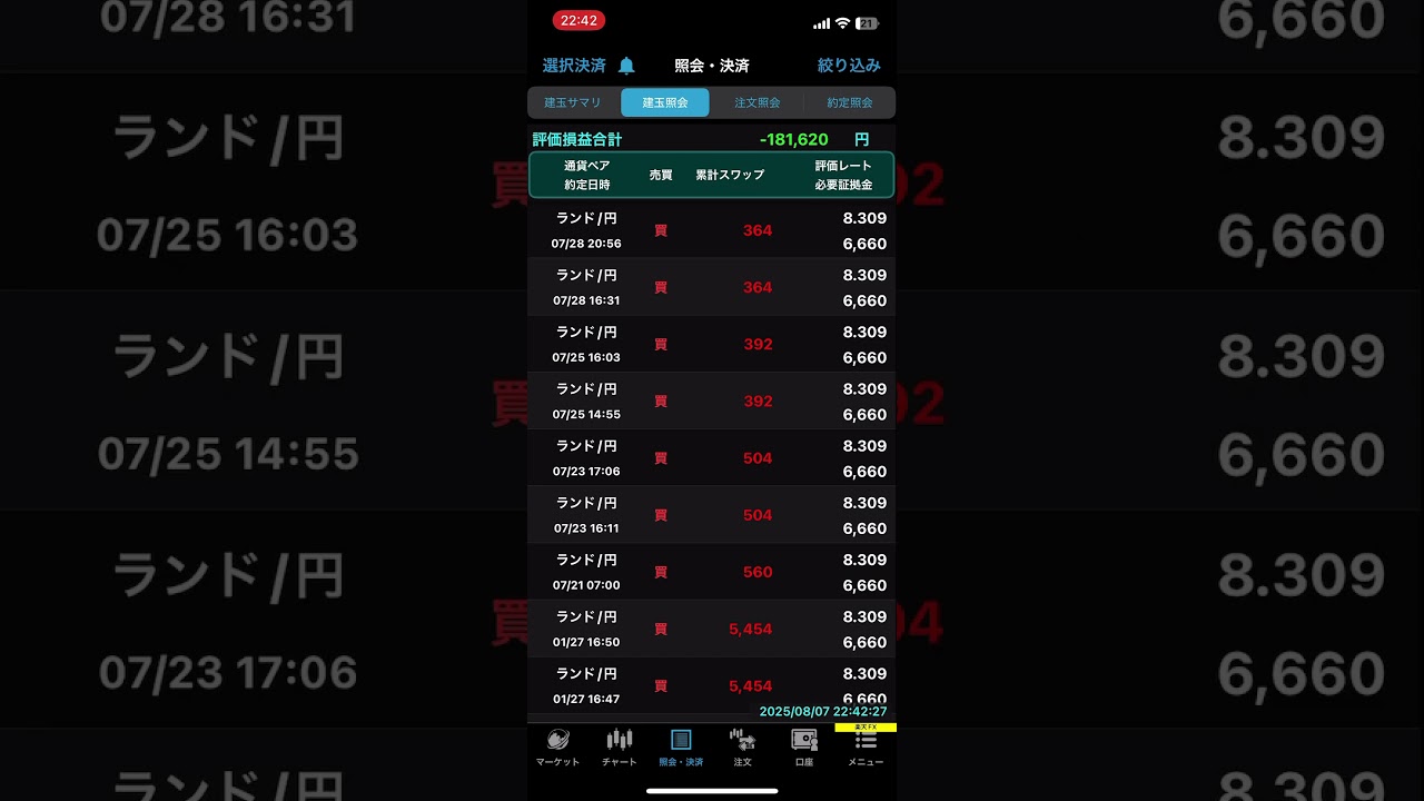 2025年8月7日 南アフリカランド スワップ収入報告