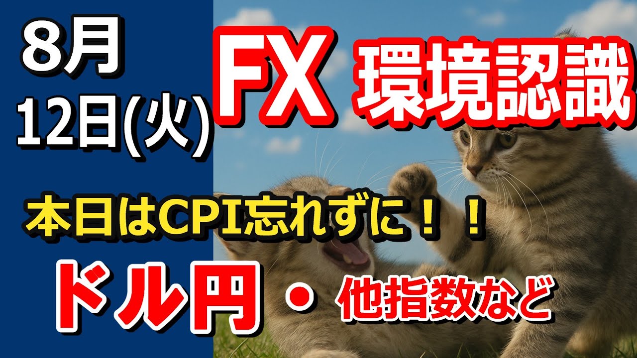 【TAKA FX】今日はCPIありますよ~! ドル円他各通貨の環境認識解説。各種指数、GOLDなど 8月12日(火)