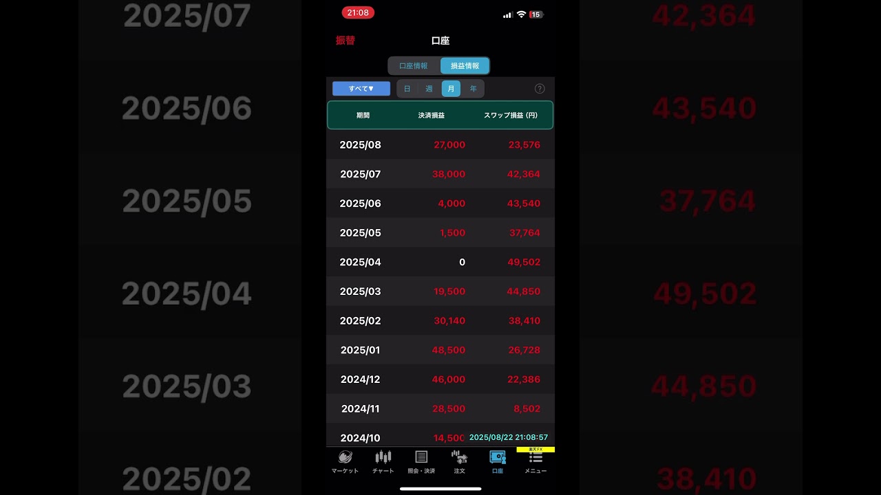 2025年8月22日 南アフリカランド スワップ収入報告