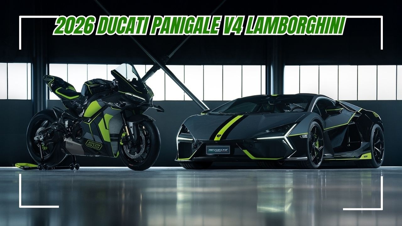 The 2026 Ducati Panigale V4 Lamborghini is a limited-edition superbike born from the collaboration between Ducati and Lamborghini, inspired by the Lamborghini Revuelto supercar and limited to 630 units plus 63 Speciale Clienti models. Powered by the 1,103 cc Desmosedici Stradale V4 engine delivering 218.5 hp with an Akrapovič titanium exhaust, this motorcycle combines extreme performance with Italian design excellence. Featuring a lightweight carbon fiber body, Öhlins Smart EC 3.0 suspension, forged wheels, and exclusive Lamborghini-inspired livery in Verde Scandal and Grigio Telesto, it represents the pinnacle of sportiness and exclusivity in the superbike world. With a weight of just 408 lbs, unique racing features, and collector’s items such as a certificate of authenticity, dedicated crate, and matching riding gear, it’s a true Italian masterpiece. Priced at $78,400 USD in the U.S. and $88,800 CAD in Canada, the Panigale V4 Lamborghini is already considered one of the most desirable collector motorcycles of 2026, making it a top search for fans of superbikes, Ducati Panigale, and Lamborghini motorcycles.