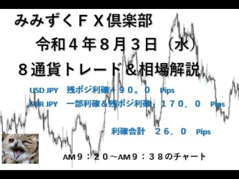 利益確定 260.0 Pips!! USD JPY・EUR JPY 令和4年8月3日(水)トレード&相場解説! #FXトレード #FXトレード手法