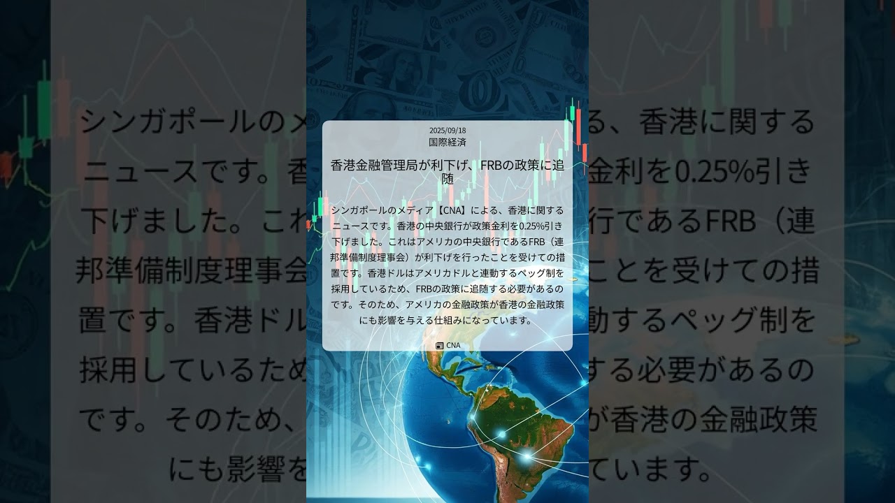 #香港 #金融政策 #利下げ #CNA #FRB #ペッグ制 #国際経済 #20250918 #Shorts