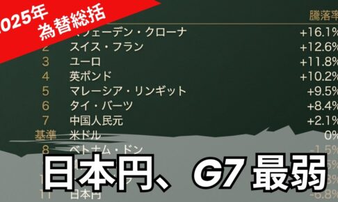 👆チャンネル登録・高評価をよろしくお願いします 2025年の為替市場は、まさに「通貨の選別」が鮮明となった激動の1年でした。 本動画では、年末時点の主要通貨騰落率データを軸に、なぜ日本円がG7で唯一の独歩…