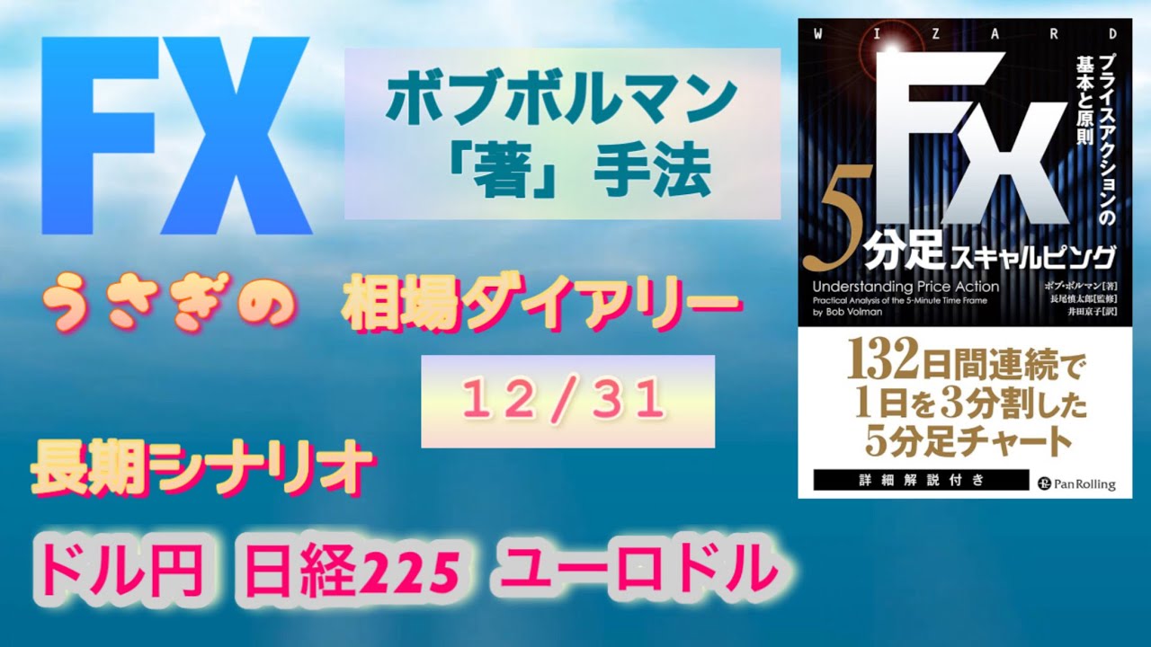 FX 相場解説 12/31 ユーロドル 【5分足スキャルピング】ボブボルマン「著」手法 長期シナリオ ユーロドル ドル円 日経225