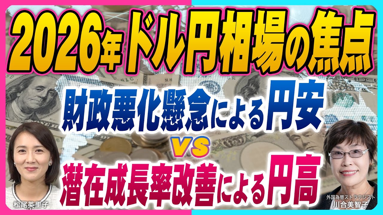 『2026年ドル円相場の焦点』財政悪化懸念による円安VS潜在成長率改善による円高】『川合美智子×松尾英里子のワールド・カレンシー』※1/31東京セミナー募集中(26年1月8日収録)