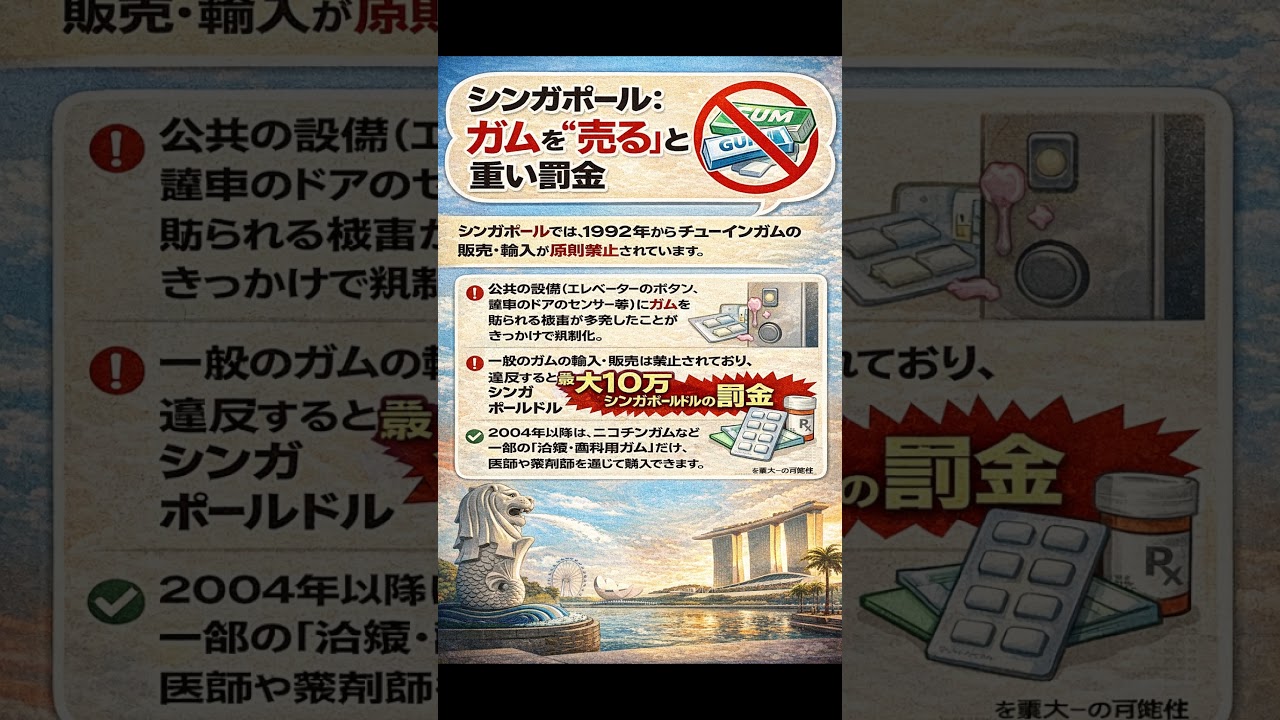 【雑学】シンガポールの「ガム規制」実はここまで厳しい #豆知識 #プチ知識 #雑学