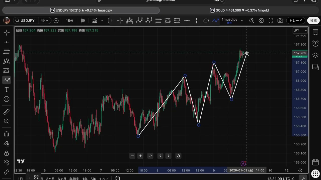 今日の三尊予想,1月9日,ユーロドル,ドル円、金 #eurusd #fx #usdjpy