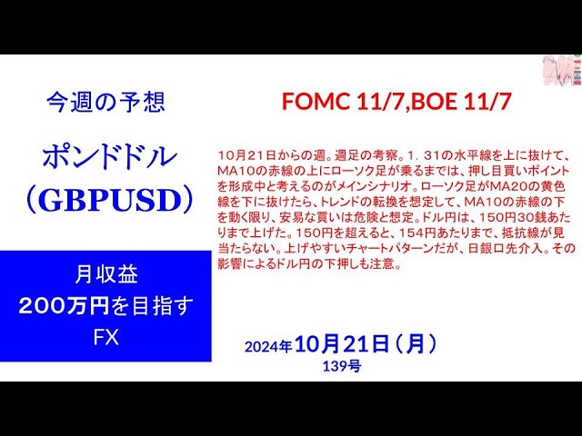 ポンドドル(GBPUSD)FX一週間予想と検証139号 2024年10月21日(月)目標付き