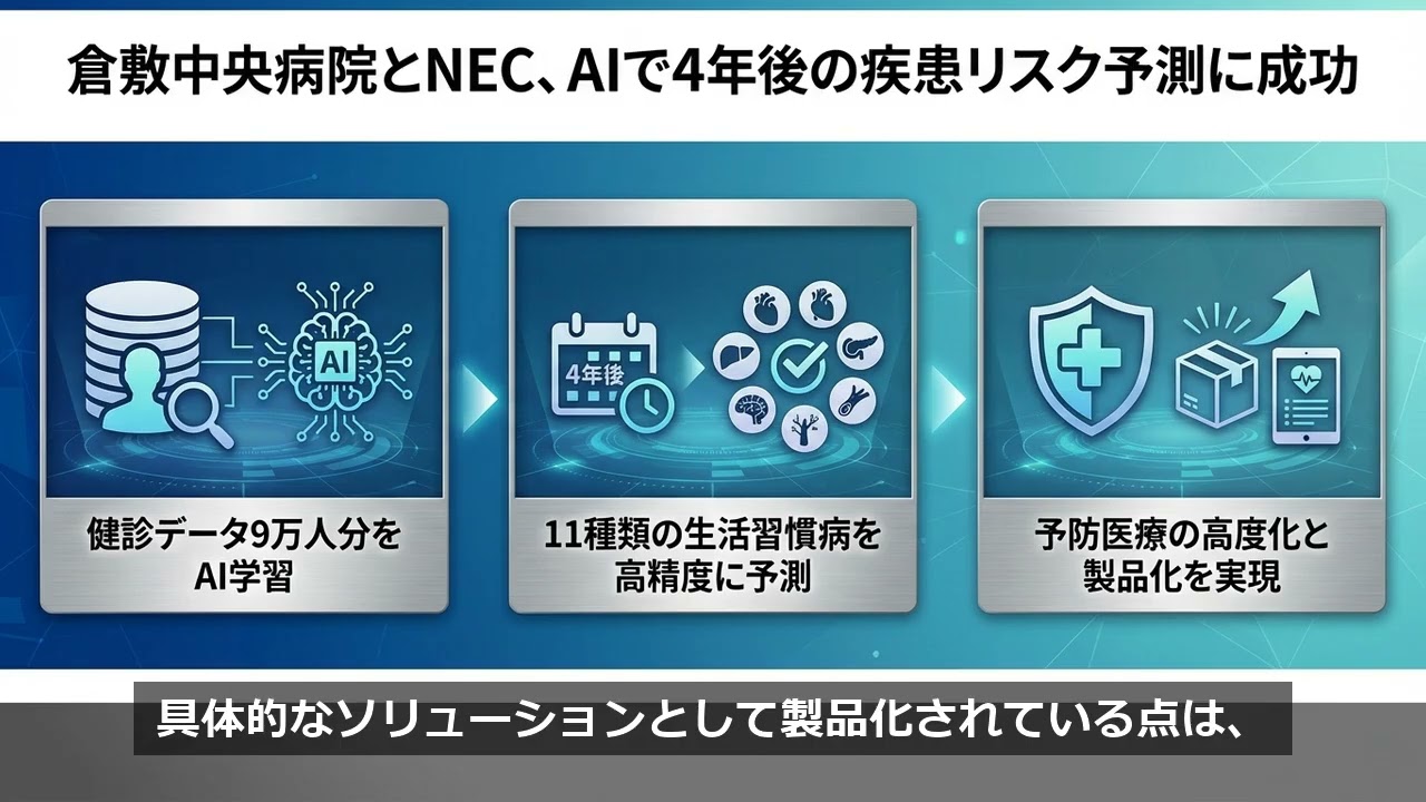 01:46 4年後の病気を予測、倉敷中央病院とNECのAIが高精度を実現