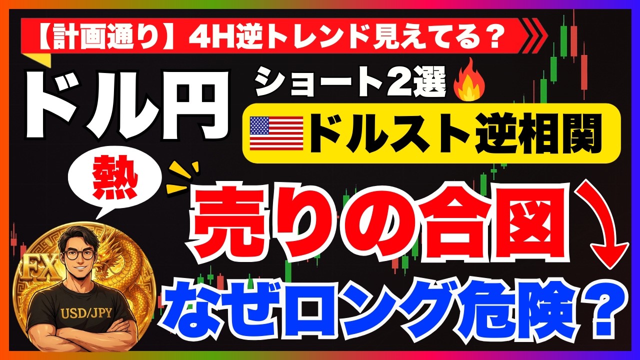 ドルストレートの逆相関も視野に入れつつ、4時間足の逆トレンドが崩れるのを待ってから確度の高いショートを狙う!