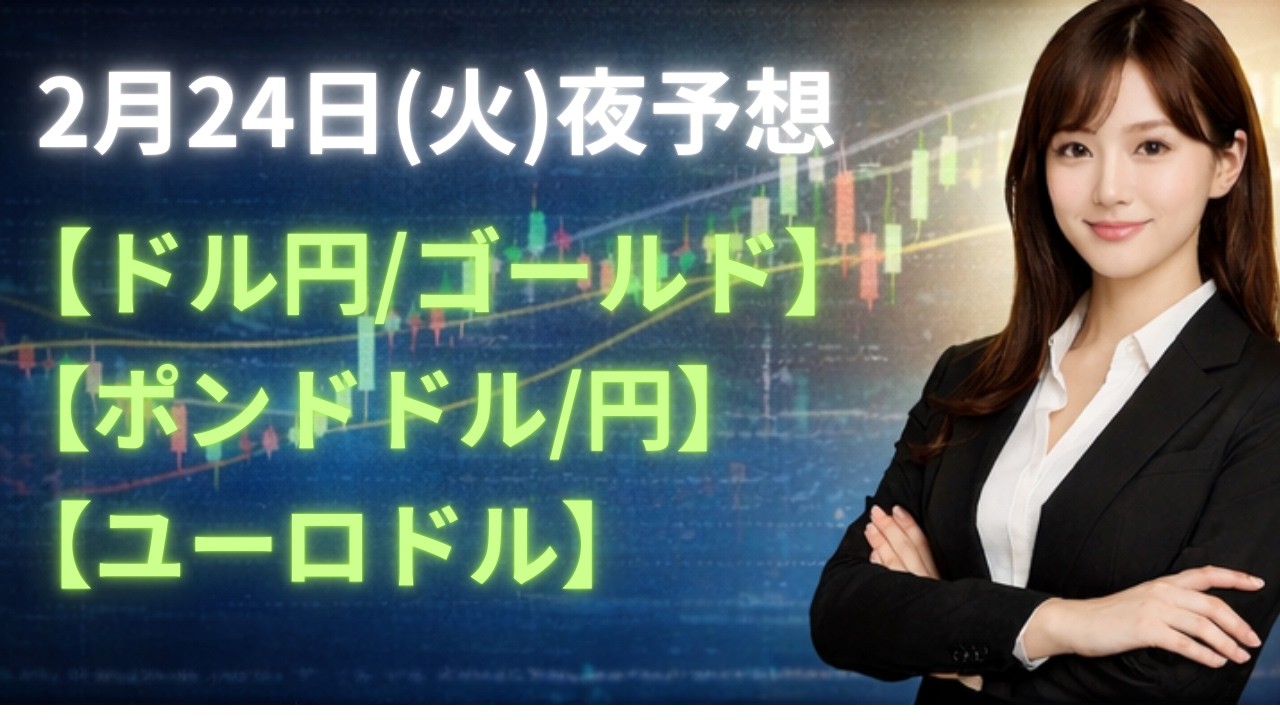 【FX夜予想】2月24日ドル円・ゴールド・ポンドドル・ポンド円・ユーロドル相場チャート分析