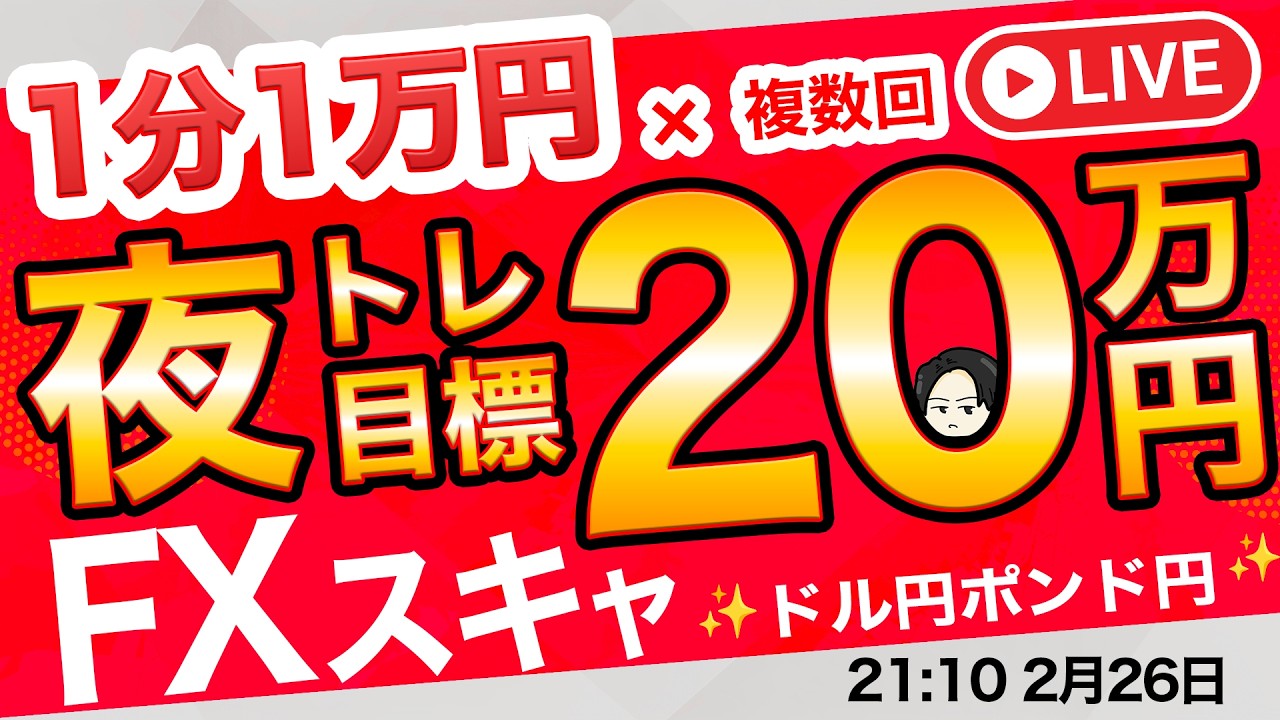 悲しい含み損約650万円。爆損です。本日は米新規失業保険申請件数発表!1分1万円×複数回で【夜ライブの利益20万円】を目指すガチスキャルピング。ドル円クロス円は上昇続くのか?。2026年2月26日(木)21時スタート