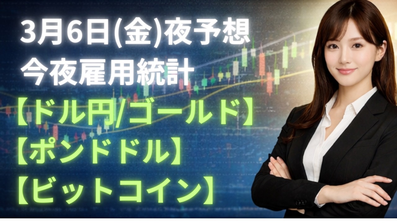 【FX夜予想】3月6日ドル円・ゴールド・ポンドドル・ビットコイン相場チャート分析(今夜雇用統計)