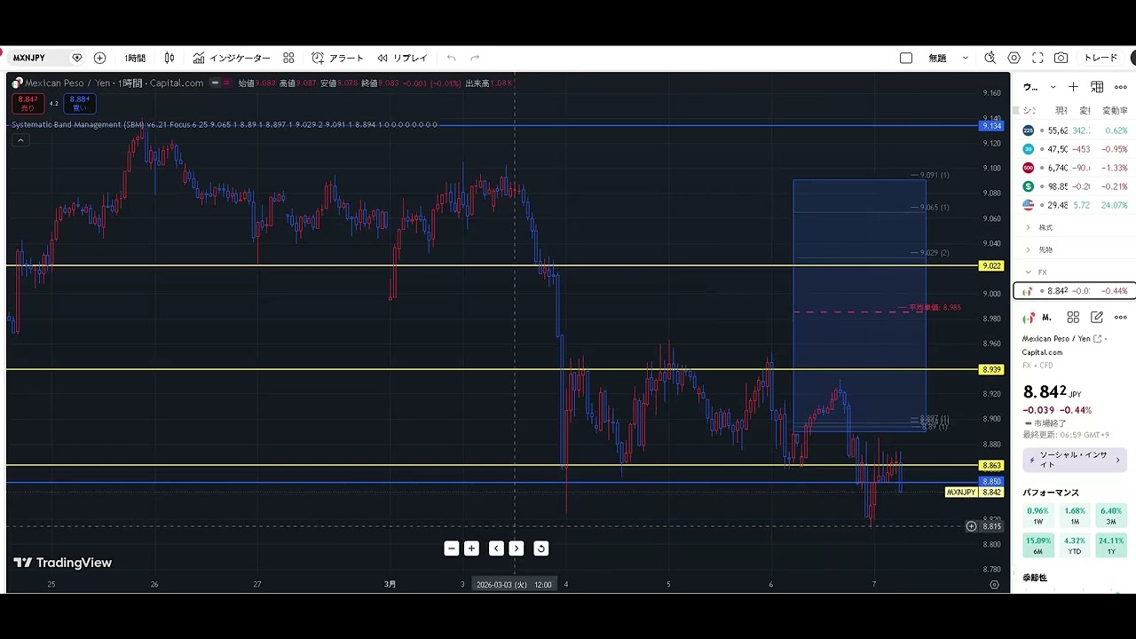メキシコペソ円、1時間足で9回止められた「鉄板の底」をあえて割らせる動きが出ました。