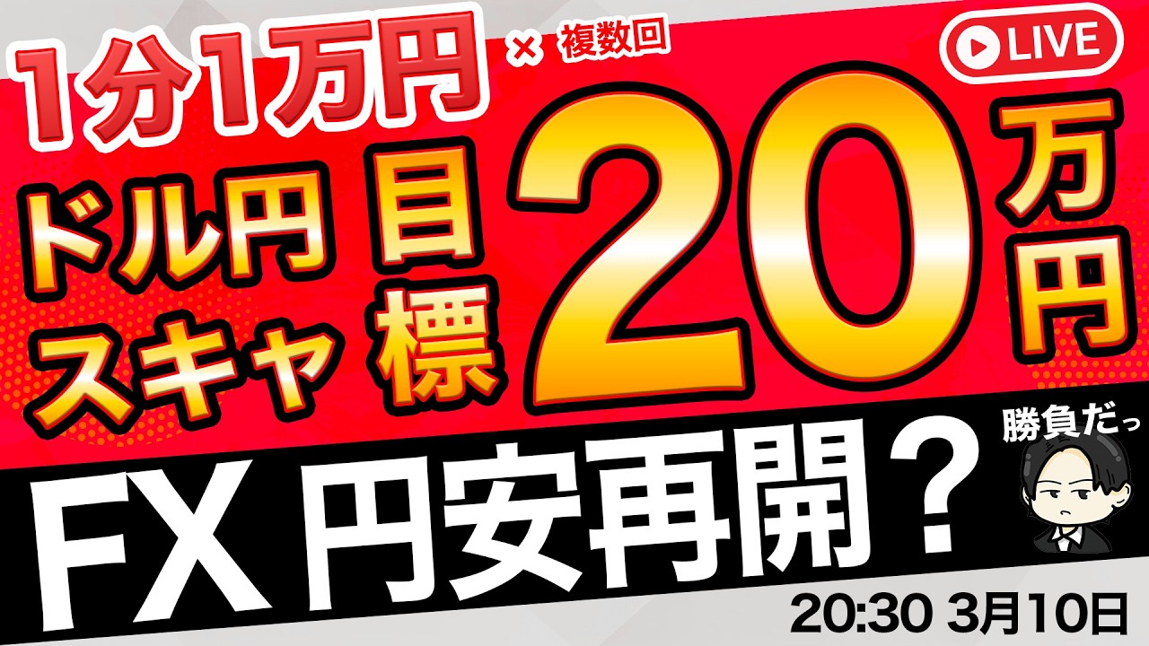 米イラン戦争早期終了見込みで株高・円安再開か?含損400万円で厳しい。原油高も終了で今後どうなる?1分1万円×複数回で夜ライブ20万円を目標にガチスキャルピング!2026年3月10日(火)20時半スタート