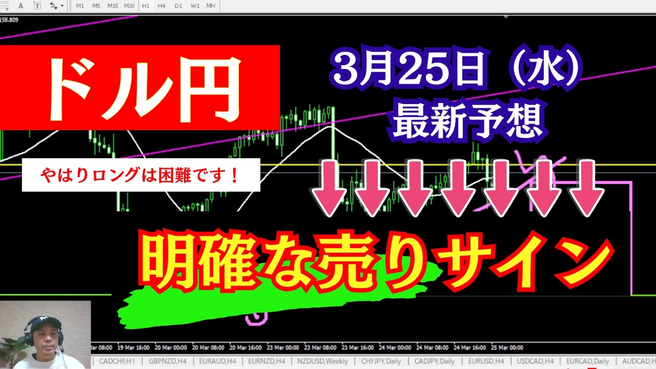 【FXドル円最新】ロング困難? 明確な売りサインが出ています。 2026年3月25日(水)