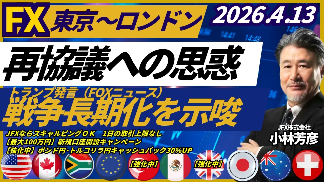 【FX/為替】米イラン再協議への思惑とトランプ大統領の戦争長期化を示唆する発言で交錯。本日、豪ドル円は112.00円で買い、ポンド円は213.75円で買い方針(4月13日)
