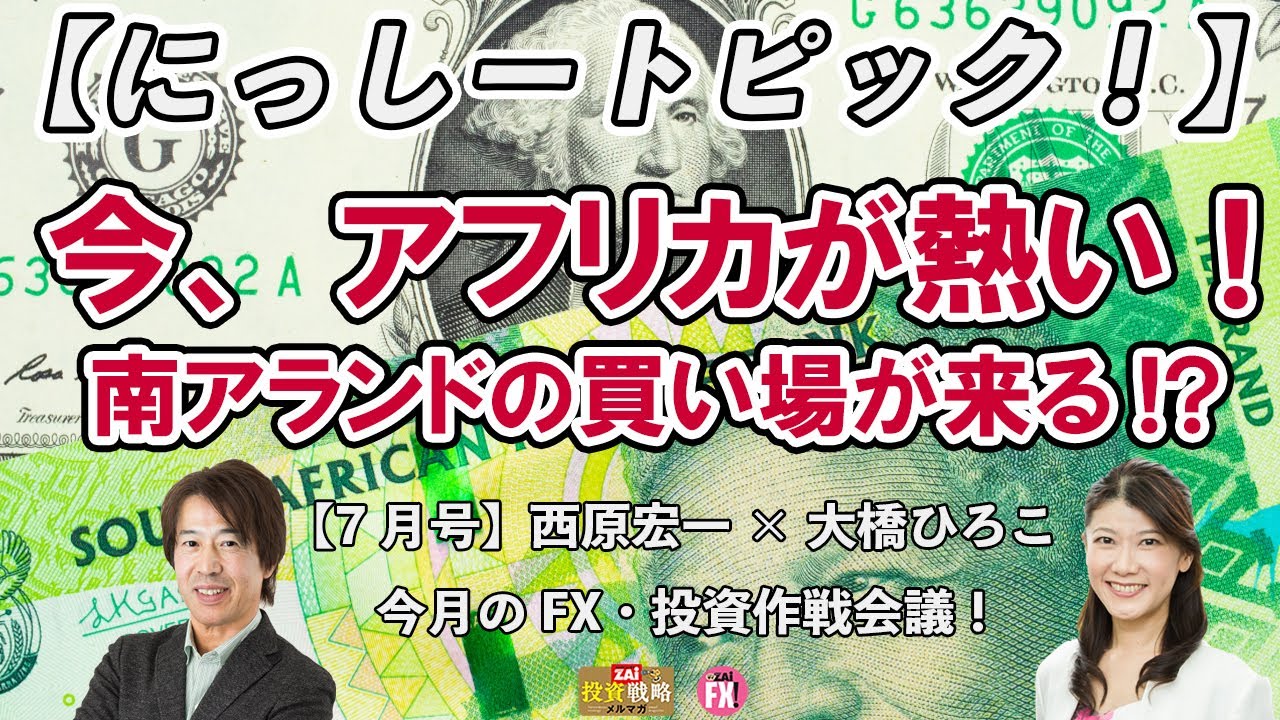 今、アフリカが熱い!~南アランドの買い場が来る!?~西原宏一×大橋ひろこ今月のFX・投資作戦会議」の会員限定動画の中で、西原さんが注目したトピックを取り上げるコーナー「にっしートピック!」を無料公開したものです。