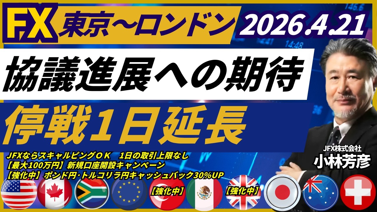 【FX/為替】協議進展への期待、停戦1日延長(日本時間23時午前)。本日、豪ドル円は113.85円で買い、ポンド円は214.75円で買い、ドル円は158.75円買い方針。(4月21日)