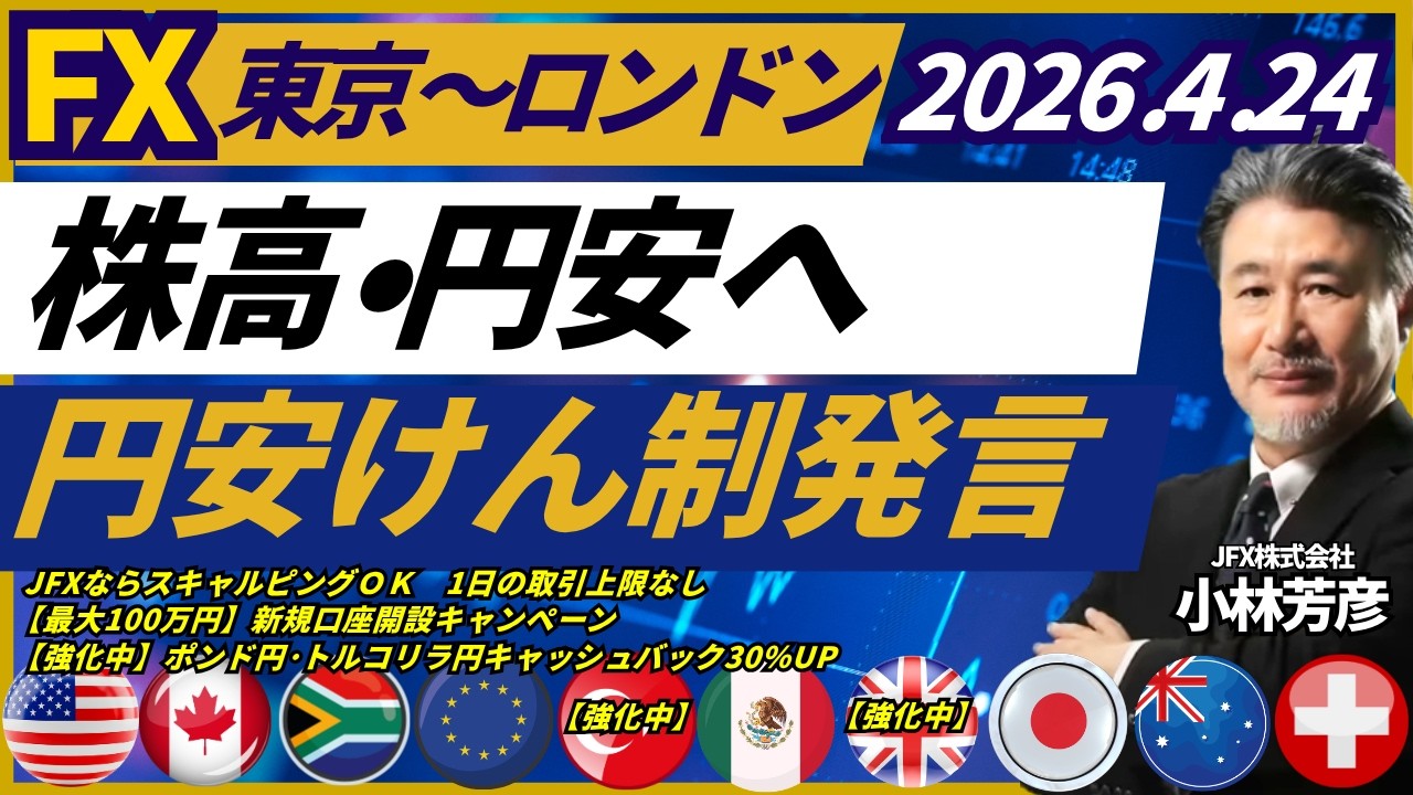 本情報コンテンツは情報提供を目的とし、投資の断定的判断を促すものではありません。お取引における最終的な判断は、お客様自身で行うようにしてください。この情報により生じる一切の損害について、当社は責任を負いません。本情報コンテンツの意見等が今後修正・変更されても、当社はこれを通知する義務を負いません。著作権はJFX株式会社に帰属し、無断転載を禁じます。