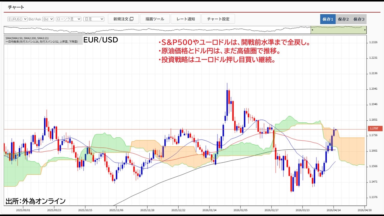S&P500ユーロドル全戻し!原油とドル円は高値圏。原油高による世界的なインフレ懸念が円相場の重し?