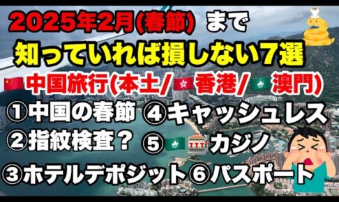 🇨🇳2025年(春節)まで中国旅行(本土/🇭🇰香港/🇲🇴マカオ)気をつけていただきたい7選