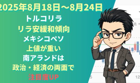 【無料】FX自動売買で私も利用している松井証券の口座開設はこちら🔽 📌 今回のテーマ 「トルコリラ、メキシコペソ、南アランド 2025年8月18日〜24日の見通し」について解説しています。…