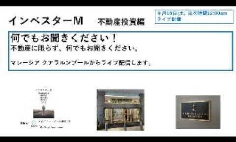@マレーシア @不動産投資 @不動産に限らず、何でもお聞きください。 8月16日インベスターM何でもお聞きください! 不動産に限らず、何でもお聞きください。みなさまのチャットのご質問にライブでお答えしていきます。マレーシ…