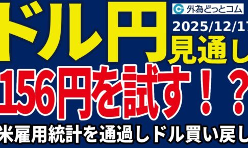ドル/円、156円を試す!?米雇用統計を通過しドルの買戻しが強まる(今夜のFX予想)2025/12/17 #外為ドキッ