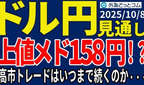 ドル円、上値メドは158円!?高市トレードはいつまで続くのか・・・(今夜のFX予想)2025/10/8 #外為ドキッ